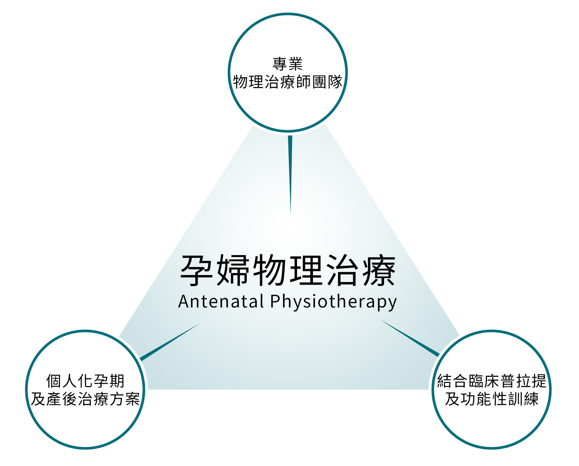由註冊物理治療師進行臨床評估,了解孕期身體變化及痛症情況,並透過安全的手法治療、運動及功能性訓練,協助孕婦舒緩痛楚、改善活動能力,同時加強核心及盆底肌穩定性,改善現有不適,減少產後的不適問題。